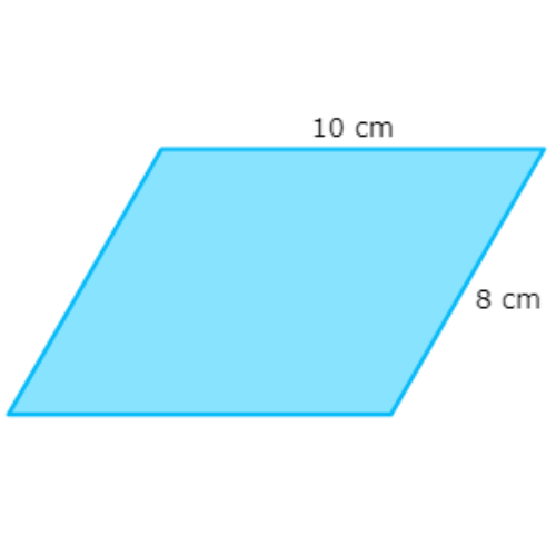 In a parallelogram, opposite sides have the same length. Look at the parallelogram and find the side lengths. add: