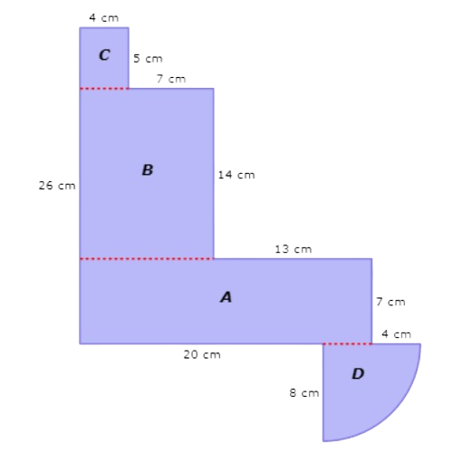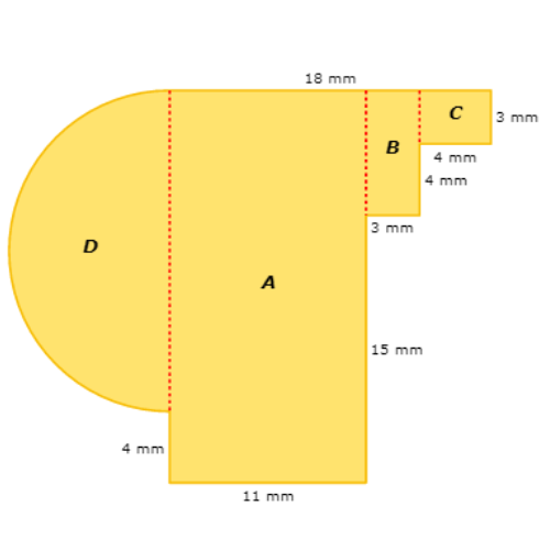 - Divide the figure into known shapes (triangle, semicircle, quarter circle, etc.).